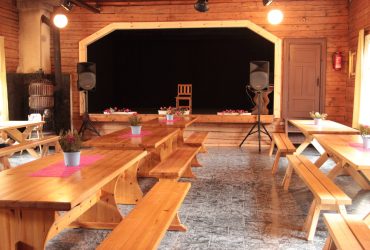 Talon isosta juhlasalista löytyy ruokailupaikat n. 100 henkilölle, esiintymislava, sekä erillinen kahvio.